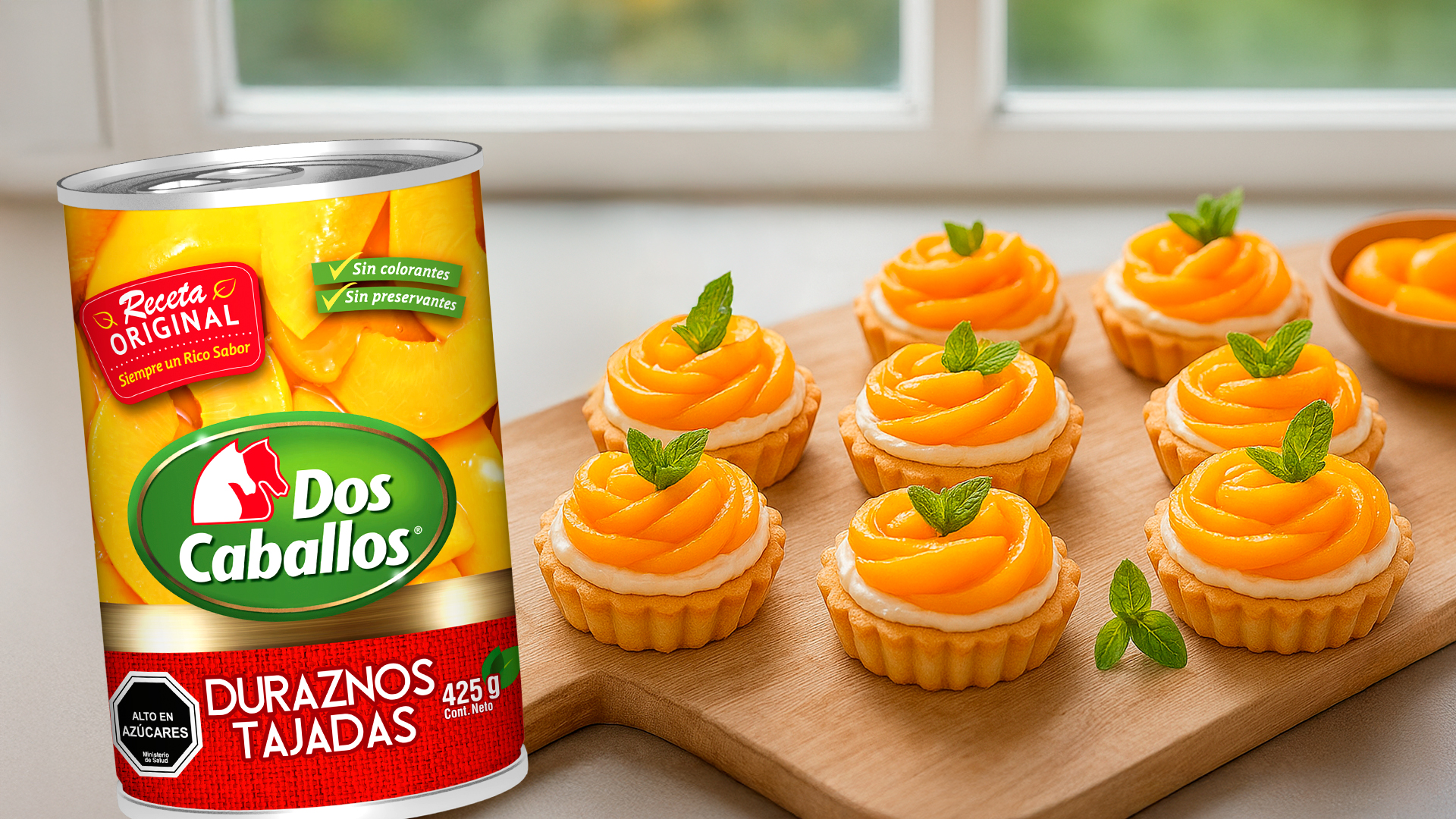 - 1 lata de duraznos en tajadas Dos Caballos 425 g.